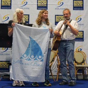 Am25. Januar 2025 war ich beim „Tag des Inklusiven Segelns“, den der Deutsche Segler-Verband (DSV) inzwischen zum dritten Mal im Rahmen der „boot Düsseldorf“ veranstaltet hatte. Mit vielen Vorträgen und Workshops wurde hier ein umfassenden Einblick in die vielfältigen Möglichkeiten des inklusiven Segelns geschaffen, vormittags diente außerdem ein „World Café“ dem produktiven Austausch der Teilnehmer, die aus ganz Deutschland angereist waren. Auch ich war hier als Vertreter des Segelverbands Baden-Württemberg, gleichzeitig aber auch als „Überraschungsgast“, denn am Ende war es an mir, die Teilnehmer mit meinem neuen Titel „Alle an Bord“ zu verabschieden.
